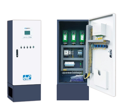 신뢰성 높은 PID 알고리즘을 적용한 DWC-30 펌프컨트롤러를 인버터에 내장하여 부스터펌프 전용 인버터를 적용하였으며, 최대 3대의 펌프를 구성 할 수 있는 인버터 제어 판넬 형식의 부스터펌프시스템 입니다.